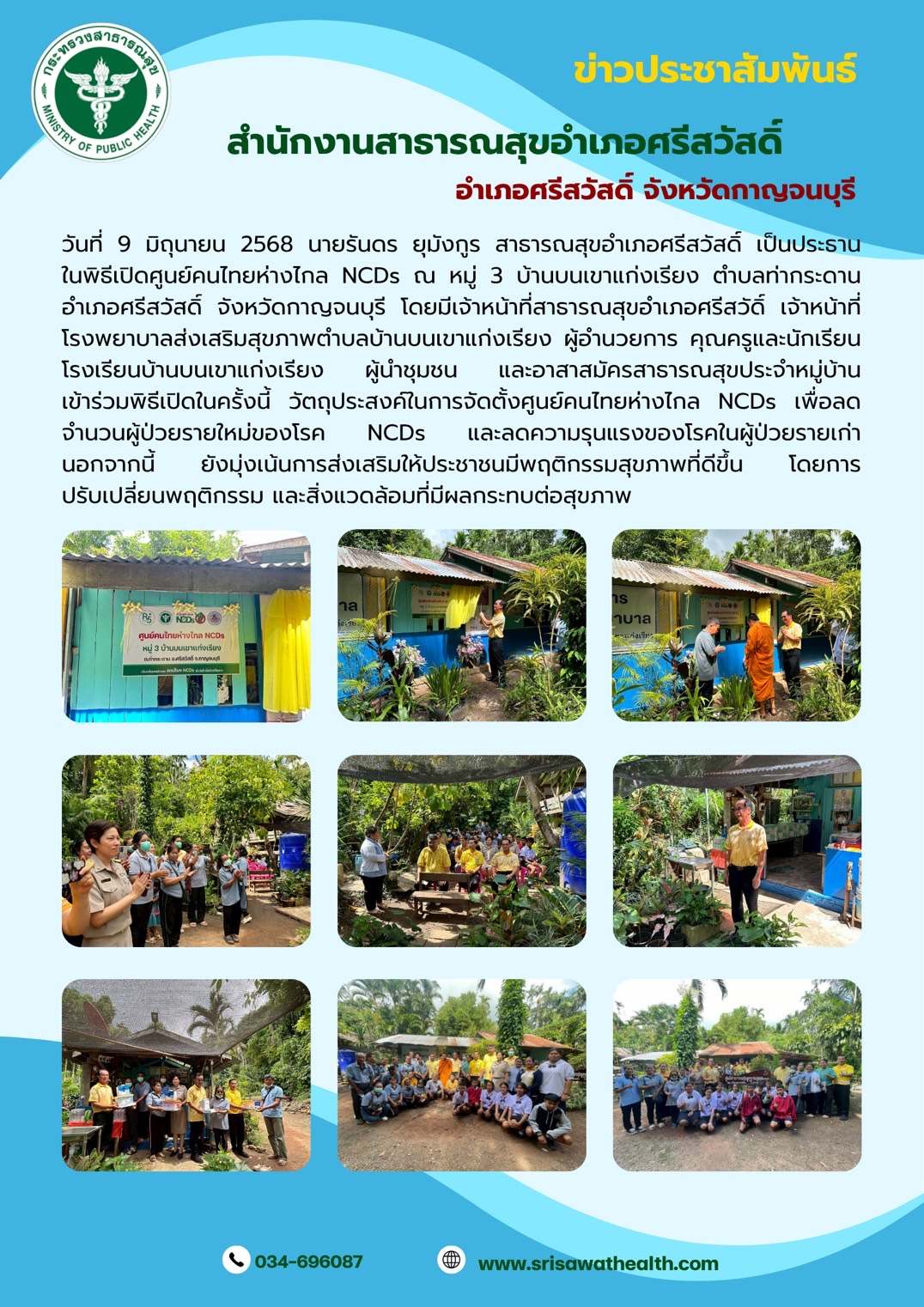 พิธีเปิดศูนย์คนไทยห่างไกล NCDs ณ หมู่ 3 บ้านบนเขาแก่งเรียง ตำบลท่ากระดาน อำเภอศรีสวัสดิ์ จังหวัดกาญจนบุรี